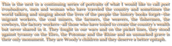 Previous Troubadour - Utah PhillipsEric Bogle and Ralph McTellEric Bogle and Utah PhillipsEric Bogle and Ramblin’ JackEric Bogle and Tom PaxtonEric Bogle’s Home PageEric Bogle was born in Peebles Scotland in 1944. His father played the bagpipes and the house was always filled with musicians as Eric was growing up. “My life has been concerned with music and I come from a country and a generation and a society where music played quite an important part in our lives. It wasn't just the social lubricant that it is these days.” In Scottish music, Bogle explains, “it was important to preserve a sense of national identity within the 'British Empire', so there was always lots of Scottish music sung around the place.” The Scots language with its lyrical Gaelic roots gave him a love for words and he wrote poems from an early age. “I've always written poems. I'm a poet who puts poems to music rather than writes songs specifically.” According to Bogle’s blogography, he had a fairly rudimentary education “where he stubbornly refused to learn much of anything.” He left school at 16 and when he was 18 he joined the local rock band “The Informers” as their new lead singer. According to his somewhat hazy memory, he got the job because of his amazing vocal ability and the fact that he owned a Kombi van. When the band didn’t turn him into a rock sensation he denounced the whole pop music scene as “frivolous and full of bloody wankers” and became a folk singer.In the late 1960s, economic conditions in Scotland were deteriorating rapidly. After a series of dead end jobs, Bogle began searching for opportunities elsewhere. He chose Australia because, as Bogle tells it, he was led to believe that “Scotland and Australia were pretty much the same, except in Australia there's more sunshine and better wages. Of course, when you get here it's such a different society, it's a real shock. It's nothing like Scotland, I'm pleased to say.” So Bogle said goodbye to friends and family and moved there in 1969.Bogle took a job as an accountant but he kept his love for poetry and music and was quickly attracted to the lively folk scene he encountered there. He learned to play the guitar and began singing in the local clubs. In 1972 he met Carmel Verona Sutton in Canberra and they were married. According to Bogle, “they still are, much to their mutual surprise.” He learned how to put his poems to music and, in 1971, wrote one of his most recognized songs, “The Band Played Waltzing Matilda,” a haunting evocation of the ANZAC (the Australian and New Zealand Army Corps) experience fighting in the Battle of Gallipoli in World War I. It is not only a deeply moving anti-war ballad but also has strong references to the war in Vietnam which dominated the news at the time. The song has since been recorded by John McDermott, Mike Harding, the Pogues, De Dannan, Peter Paul and Mary, the Clancy Brothers, the Corries, Stockton’s Wing, the Chieftains and Priscilla Herdman among others and most recently by the Dropkick Murphys.Bogle continued writing songs with strong political and social undertones and interspersed them with humorous jabs at some of the quirks and idiosyncrasies of his newly adopted land. “Like most migrants I was cast in the role of observer in a totally new society. So you see a lot of novel ways and funny little things, that possibly the people who live here can't see, because they can't see the wood for the trees….” Commenting on his penchant for writing satirical songs Bogle asks “do you stand outside the mainstream as an observer and write songs as such, or do you join the mainstream and write songs as a participant? I know which one I prefer.”Bogle kept his day job as the Queensland state accountant for his company, complete with a home in Brisbane, a company car, an expense account and big salary, until 1980 when, as he tells it, “one day, for no particular reason, I looked around and thought ‘Is this all there is?’” Deciding that it wasn't, he hauled his wife back to Sydney with him and embarked on the perilous careerpath of a professional musician. “The rest, as they say, is history. Fairly obscure history, but history nonetheless.”Bogle’s songs cover a wide variety of subjects, including bright comic songs, satires and protest songs ranging from “The Aussie Bar-B-Q” and “Do You Sing any Dylan” to “Safe in the Harbor,” an homage to Stan Rogers, “Katie and the Dreamtime Land,” a tribute to American folksinger Kate Wolf following her untimely death from leukemia in 1986. Regardless of the subject, underlying all of Bogle’s songs is a deep reflection on the human condition. Three of his songs (recorded by other artists) have become Number One hits in Ireland. In 1976 he wrote another poignant anti-war song, “No Man’s Land” that has become as well known as “And the Band Played Waltzing Matilda.” It makes reference to the old Scottish song, “Flowers of the Forest” which is traditionally played over the grave of a soldier. The song is also known as “The Green Fields of France” and has been recorded by the Fureys, the Men they Couldn’t Hang, Ed Trickett, Joan Baez, Donovan and June Tabor. Ironically, in 1997 Tony Blair, British Prime Minister and unflinching supporter of the Busch invasion of Iraq, called “No Man’s Land” his favorite anti-war poem.Over the years, Bogle’s songs have earned him the Order of Australia and the UN Peace Medal amongst many other accolades. He has recorded more than a dozen CDs, still writes and tours and has become a staple of the international folk community. He currently resides near Adelaide, South Australia."I'm Scottish for God's sake, of course I'm sentimental."“Realizing hewas in danger of one day disappearing up his own fundamentals, Eric decided thatperhaps his future lay elsewhere, and so emigrated to Australia in 1969.”“Ironically, in 1997 Tony Blair, British Pr