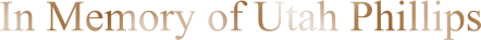 Obituary in the New York TimesThe Long MemoryUtah’s CD’s on AmazonUtah Phillips was a folk singer, raconteur, pacifist, poet and tireless fighter for social justice. His view of unions and politics was shaped by his parents, especially his mother, who was a labor organizer for the CIO. He toured the country playing his music and telling stories about the labor struggles of the past and of all those who have been “blown up out there on the no-man’s land of 20th century industrial society.” Phillips wasborn in Cleveland, Ohio, on May 15, 1935. After a brief tour in the army that included time in Korea he returned in 1959 feeling angry, used and lost. He traveled the country as a tramp, drinking heavily, hopping freight trains and listening to people who had been “spit out” by corporate America. Over the years he collected their stories and slowly began to see another country. “I got a vision of who I really was and where I came from, something I never got in school.”The turning point in Phillips’ life came at the Joe Hill House in Salt Lake City, Utah where he met Ammon Hennacy, an Irish American pacifist, Christian anarchist, social activist, member of the Catholic Worker Movement and of the International Workers of the World commonly known as Wobblies. Utah became a lifelong member of the IWW as well and took pride in being a Wobbly. Hennacy espoused the principles of both nonviolence and anarchy and showed Phillips how to channel all his rage and anger. Phillips worked at the Joe Hill House for the eight years and then ran for the U.S. Senate as a candidate of Utah's Peace and Freedom Party in 1968. He received 2,019 votes (0.5%) in an election won by Republican Wallace F. Bennett. He ran for president of the United States in 1976 for the Do-Nothing Party. It was a lost cause, Phillips acknowledged. After all, how can you win an election with supporters committed to that cause?After his aborted presidential run, Phillips became persona non grata in Utah and moved to Saratoga Springs, New York on the advice of his friend, Rosalie Sorrells. He turned the stories of all those forgotten men and women he had met in his travels into poetry and music and became a folk singer. He adopted the stage name “U. Utah Phillips” after T. Texas Tyler and joined what he called “the great folk music scare of the 1960s.” His first appearances were at the Café Lena in Saratoga Springs where he became a regular for several years.As his fame grew, Phillips started traveling again, taking his stories and songs to all parts of the country. He became an elder statesman for the folk music community, and a keeper of stories and songs that might otherwise have passed into obscurity. He recorded his first albums for the Philo label and later recorded for Red House, including an album of duets with Rosalie, “The Long Memory,” in 1996. He praised the “long memory” and called it the most radical idea in America. When asked why he thought it so important, Phillips answered: "I have a good friend in the East who comes to my shows and says, you sing a lot about the past, you can't live in the past, you know. I say to him, I can go outside and pick up a rock that's older than the oldest song you know, and bring it back in here and drop it on your foot. Now the past didn't go anywhere, did it? It's right here, right now. I always thought that anybody who told me I couldn't live in the past was trying to get me to forget something that if I remembered it would get them in serious trouble." Phillips retained his membership in the great Traveling Nation, the community of hobos and railroad tramps that populated the Midwestern United States along the rail lines. An annual hobo gathering that began in 1900 is still held in Britt, Iowa in August every year and Utah was a frequent participant.Phillips became a folk circuit favorite and mentor to songwriter Kate Wolf. He recorded songs and stories with his friend, Rosalie Sorrels and was nominated for a Grammy Award for his work with Ani DiFranco on the CD “The Past Didn’t Go Anywhere.” His "Green Rolling Hills" was made into a country hit by Emmylou Harris, and "The Goodnight-Loving Trail" and “The Telling Takes Me Home” became classics as well, being recorded by Ian Tyson, Tom Waits, Ed Trickett and many others.In 1995, Phillips was diagnosed with a heart condition and was forced to cancel all future concerts. He moved to Nevada City, California and started a radio show called “Loafer’s Glory: The Hobo Jungle of the Mind.” Phillips at one point contemplated converting his '53 Chevy pickup, "Red Emma" (after American Communist Emma Goldman, of course), into a mobile five-watt radio station, KDBR (Kinetic Drive By Radio), "so I can drive around my country and broadcast stuff the other stations miss." The plan didn’t materialize but Phillips did host the radio show from his home for several years and it can be heard on The Long Memory.In 1997 Phillips received both a Lifetime Achievement Award from The Folk Alliance and a Lifetime Service to Labor Award from the American Federation of Musicians, Traveling Musicians Local 1000. Utah Phillips died May 23, 2008 in Nevada City, California, from complications of heart disease, at the age of 73. His lifelong mission was to offer levity to lift our souls, compassion to join our hands, and honesty to help us see how we must act.Utah Phillips in his own words. On the value of honest labor:"Frying-Pan Jack said to me he'd been tramping since 1927, 'I told myself in '27, if I cannot dictate the conditions of my labor, I will henceforth cease to work.' You don't have to go to college to figure these things out, no sir. He said, 'I learned when I was young that the only true life I had was the life of my brain. But if it's true that the only real life I had was the life of my brain, what sense does it make to hand that brain to someone for eight hours a day, for their particular use, on the 
