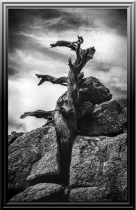 I believe that the depth and power of the creative process--whether it is writing, painting, music orphotography--has never been better expressed than in the opening verse from William Blake’s“Auguries of Innocence.” As photographers we strive to capture a vision of the world that is bothfamiliar and new and to imbue each with the other, to make the familiar new and the new familiar.The power of art is it’s ability to transcend the mundane and give us a glimpse into the newlyemerging world into which we are all moving. Art is a beacon lighting the way, helping us to find apath where none seems to be. In its purest form, art is not political or moral but visionary. It providesus with the concepts and emotions to make sense of the political and moral but it should never bedirected by them. That would be propaganda.In very simple terms, art helps us to live and the artist bringshis entire life to his art. Ansel Adams put it very succinctlywhen he said:“You don't make a photograph just with a camera. You bring to the act of photography all the pictures you have seen, the books you have read, the music you have heard, the people you have loved."A photographer doesn’t just take a photograph, he makes a photograph. The negative is only thecomposer’s score and the print is the performance. My intention as a photographer is to make thatperformance as compelling as possible by revealing the world underneath the everyday, thepedestrian, the familiar. In the photograph of Monument Valley above I wanted to infuse a sense ofotherworldliness and alienation into the familiar landscape by emphasizing the colors and depth. Thiswas done through the use of the Sabatier effect which turns part of the image into its negative. Theotherwise serene desert now acquires an underlying tension and conflict that adds movement to theimage.The image to the right is of peeling paint on an old abandonedroad grater. The rust patterns have a van Gogh like dynamic andthe remnants of the original yellow paint provide a sharpcounterpoint to the rust. It’s a glimpse into the frenetic energyunderlying all order like the seething quantum flux beneath allthat we think is permanent. As Marx so aptly observed of themodern world, all that is solid melts intoair.The photo on the left is a black andwhite image of a twisted tree caught in arocky vice. Ironically, the tree, when still alive, had split that same rock in abold demonstration of the power of life over the death. But now the tables areturned and the fissure has become a vice closing in on its creator. The treeseems to be writhing in pain under the pressure, reluctant to give up it’s holdon life. Like Dylan Thomas’ aging man, it is raging against the dying of thelight, refusing to go out easily and clinging to life until the very last. For me,photography is reminder of our fragility and impermanence but at the sametime an affirmation of life.To see a world in a grain of sand,And a heaven in a wild flower,Hold infinity in the palm of your hand,And eternity in an hour.-William Blake